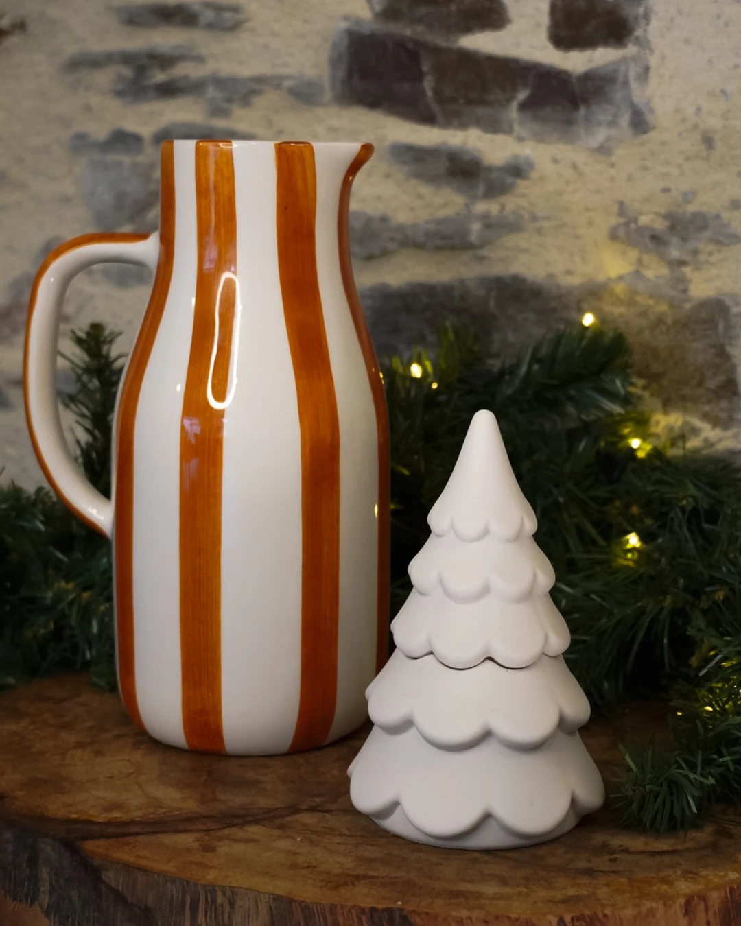 Coulée à la main dans son pot artisanal en Jesmonite, cette bougie parfumée dans son pot sapin est l’objet 2-en-1 parfait pour créer une ambiance cocooning. Plus qu’une simple bougie, elle se distingue par son pot au toucher doux et au fini mat unique qui renferme un parfum gourmand et envoûtant. Pensée comme une expérience olfactive unique, elle libère à l’allumage son parfum Ambre ou Thé pain d’épices, un mélange réconfortant. Chaque pièce, confectionnée avec soin, embaume votre intérieur d’une senteur chaleureuse, idéale pour vos moments de détente. Durable et polyvalente, elle entame une seconde vie une fois la cire consumée. Après un nettoyage simple, elle se métamorphose en boîte à bijoux raffinée, en vide-poche ou en pot à secrets. Choisissez le parfum qui s’harmonisera à votre intérieur :